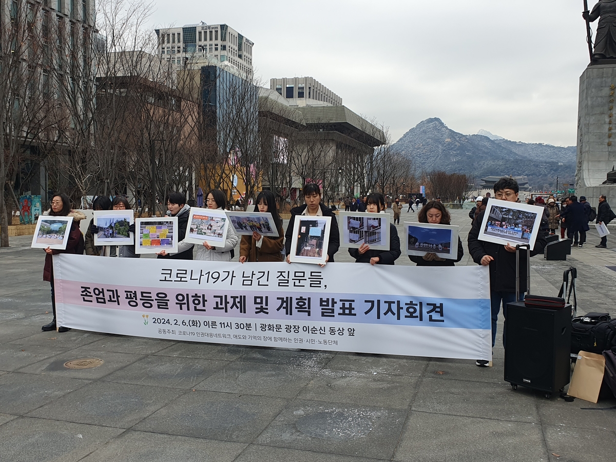 코로나19가 남긴 질문들, 존엄과 평등을 위한 과제 및 계획 발표 기자회견 <코로나19 인권대응네트워크>는 오는 2월 20일 화요일, 19시에 광화문 파이낸스 센터 옆에서 코로나19로 인한 죽음, 애도와 기억을 위한 세 번째 추모문화제를 개최합니다. 코로나19 팬더믹은 우리 사회에 수많은 희생자와 여러 문제를 남겼습니다. 떠나보낸 이들의 유가족들은 애도할 기회도 없이 살아가고 사회에 드러난 문제점들은 방치된 채 세상은 여전히 변함없이 굴러갑니다. <코로나19 인권대응네트워크>는 추모문화제를 열고 코로나 19가 우리 사회에 남긴 문제점을 돌아보고 떠난 이들에 대한 추모와 애도를 통해 생명과 안전의 의미를 되새기고자 합니다.